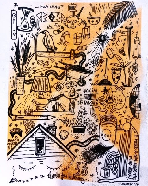 HOW ARE YOU PASSING QUARANTINE TIME? I’M MAKING THE MOST OF A BAD TIME. GETTING BACK TO DOING A LOT OF DIFFERENT ART IN MEDIUMS I DON’T USUALLY HAVE THE TIME TO MESS WITH AS MUCH. I’VE BEEN READING SOME BOOKS, I REPLANTED MY GARDEN, TENDING TO THE YARD, DOING SOME DING REPAIR. BIKE RIDES. LUCKILY, I WORK AT A SHOP ON THE BEACH AND GOT A PASS TO STILL GO WHEN THE WAVES ARE WORTH IT (THEY RECENTLY CLOSED ACCESS TO THE BEACH RATHER THAN LOCALS OR BUSINESSES). DRINKING A LOT OF REVELRY BEERS (THE BREWERY I DESIGN FOR), AND BUILDING RANDOM STUFF AROUND THE HOUSE WITH ALL OF MY SCRAP WOOD (I JUST RAN OUT OF RANDOM SCREWS, DAMN!). I’VE SOMEWHAT BEEN ENJOYING ALL THIS TIME, BUT AFTER A FEW WEEKS, I’M MISSING GOOD TIMES WITH MY MATES FOR SURE.