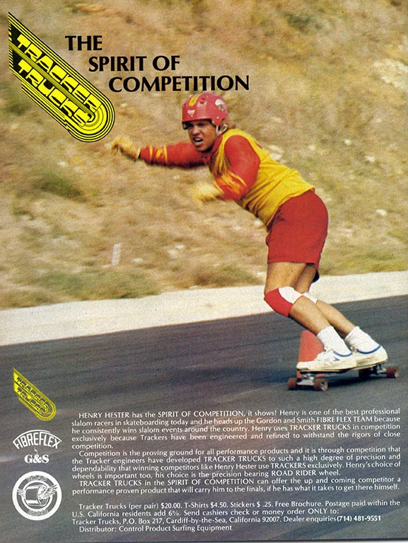 Henry - I’ve always been a street skater, cruiser guy. Again, George Taylor and I set up soda cans on my street and used them for slalom. As the second 1970s wave of skateboarding hit (the “Golden Era” to some) I found La Costa and the endless black asphalt hills. We raced slalom every weekend. It turned into a pro slalom race thing and I did well. Seven World Titles, G&S and Santa Cruz board models, wheel models and travel throughout the USA making $1,500 a month! This was 1975-79. I became a promoter of pool events under the name Hester Series in the late 70’s. That series predated Frank Hawk’s “Gold Cup” and eventually the X-Games.