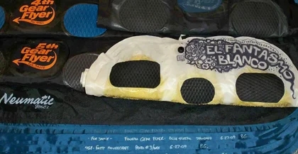 JMC - Heaps. 4th Gear Flyer Standards, I think three, in different fabrics and deck traction setups. The two 5th Gears. A range of small wave/low inflation mats of varying sizes called Hovercrafts. The Hovercraft series came out of a one-off Paul made me called El Fantasmo Blanco. The white mat is magic. We never quite duplicated it. I had a Fatty, passed it on to a friend. The guy who drew the artwork on Blanco.