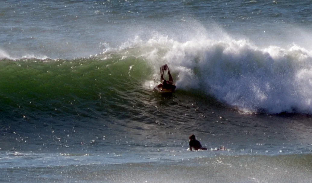 Any way in 2002 I made a bunch of hydro paipos, out of plywood and windsurfing parts. The first time I swam out with the Hydro paipo was in August of 2002 in Montauk.